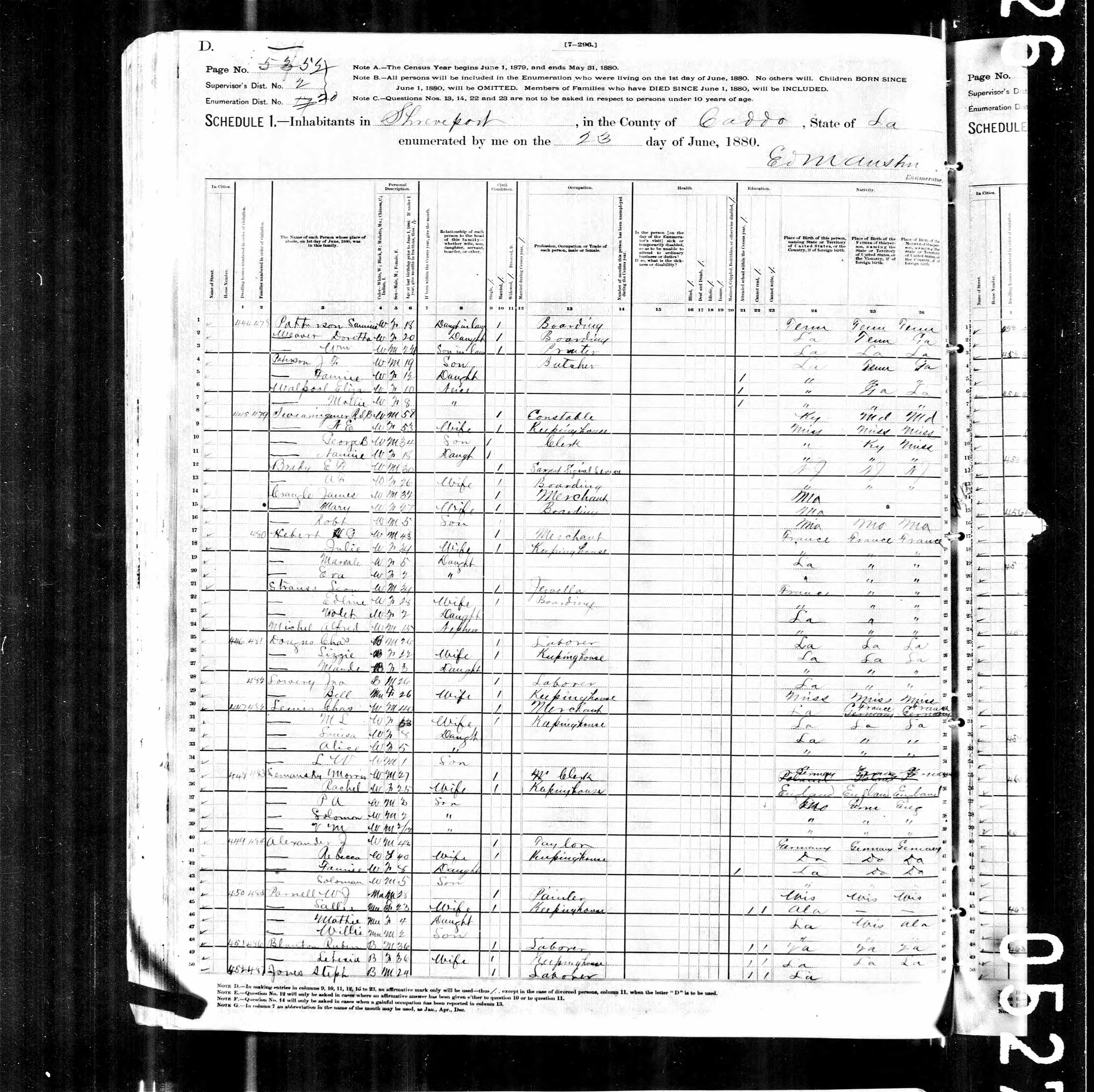 1880 census. Also in the household were jeweler Leon Strauss with wife "Edline" (actually Adeline Strauss),