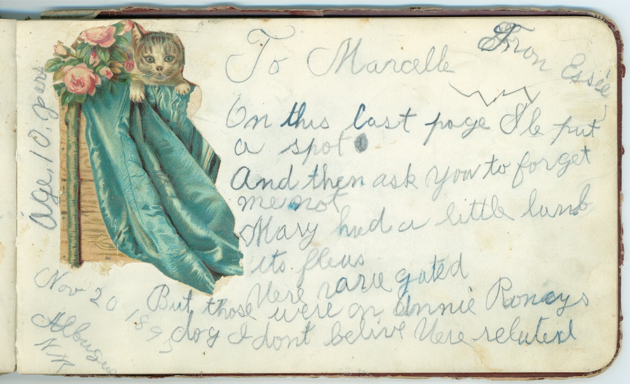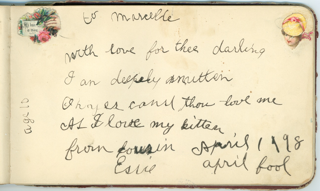 wrote several entries to Marcelle - from November 20, 1897, from April 1, 1898 (signed "from cousin"),