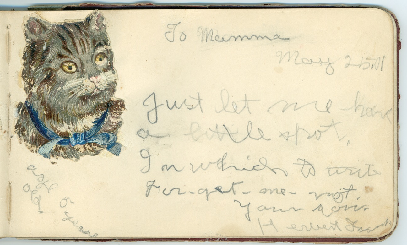 also signed the autograph book "To my dear mother" on September 26, 1915 at age 14.